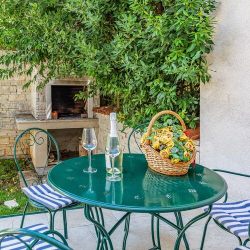 Dom postavený z kameňa, Zateplený, Prírodná oblasť, Záhradný nábytok